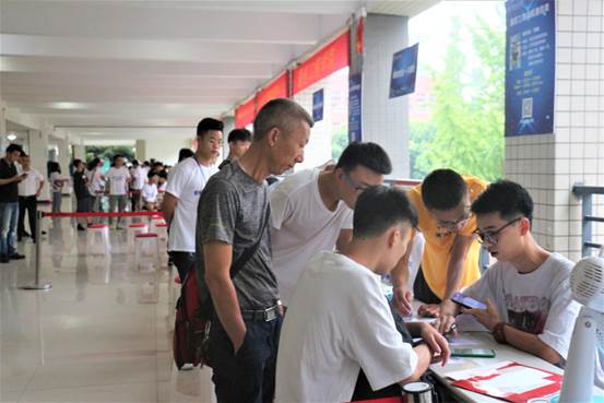 接过你的行囊,你我都是通信人。2019年9月7日上午9时许,2019级新生陆续到来,在迎新老师和员工志愿者的引导下,有条不紊的办理入学手续。热心的志愿者们用饱满的精神带领2019级新生和新生家长领取报到须知和报到现场示意图、与辅导员见面(领取校园卡、填写个人信息、领取纪念礼品)、办理宿舍入住手续等,迎新现场还设立了专业咨询点、迎新服务点、拍照纪念点等,为新生和新生家长提供全面而细致的服务。