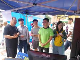 2019年9月17日,围绕“礼赞共和国,智慧新生活”主题,2019年沙坪坝区全国科普日启动仪式在三峡广场拉开序幕。重庆电子工程职业学院移动通信技术支部的王国仲、谢宗霖、刘鹤群和左琳立等同志发挥自身专业特长,积极参与了人工智能及科技和VR互动体验活动板块。